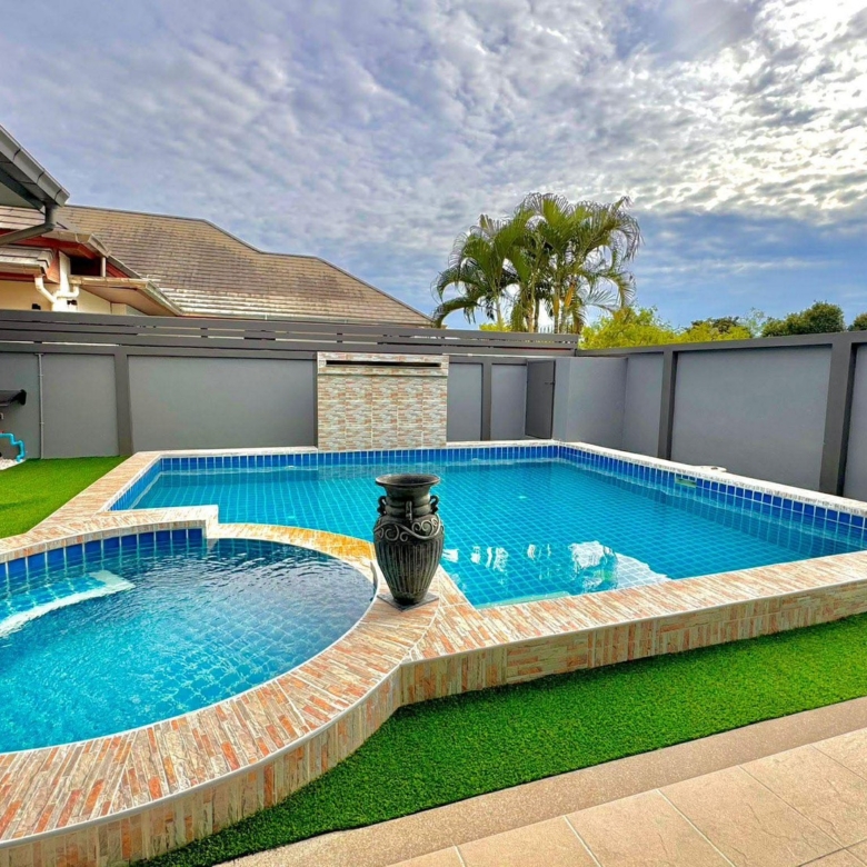 – Swimming pool with jacuzzi and wall water fall