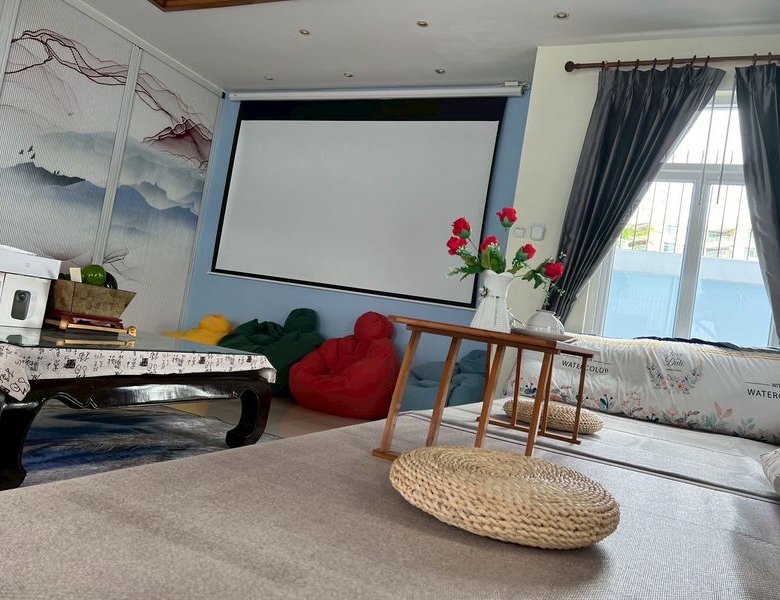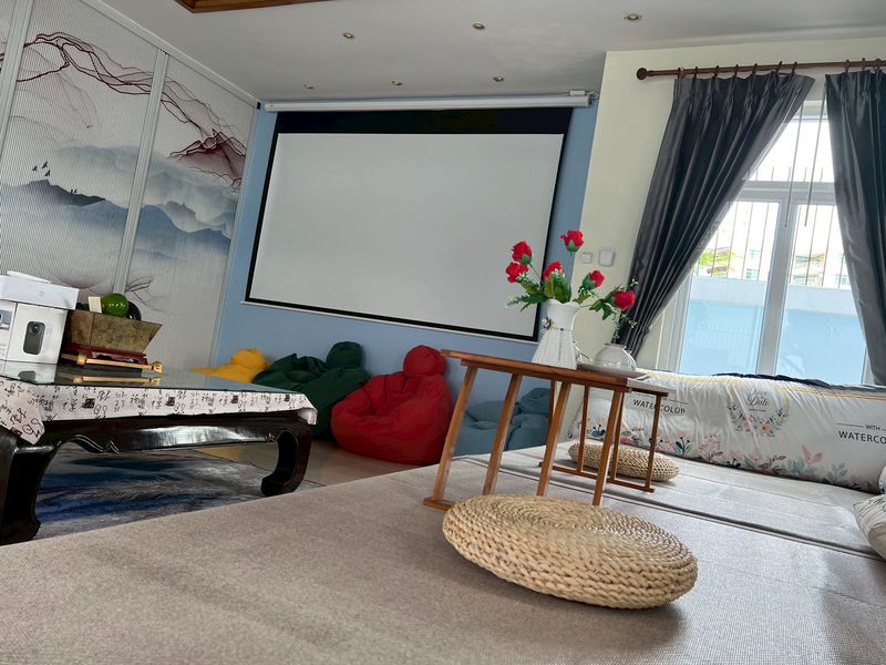 – 100-inch projector on the first floor