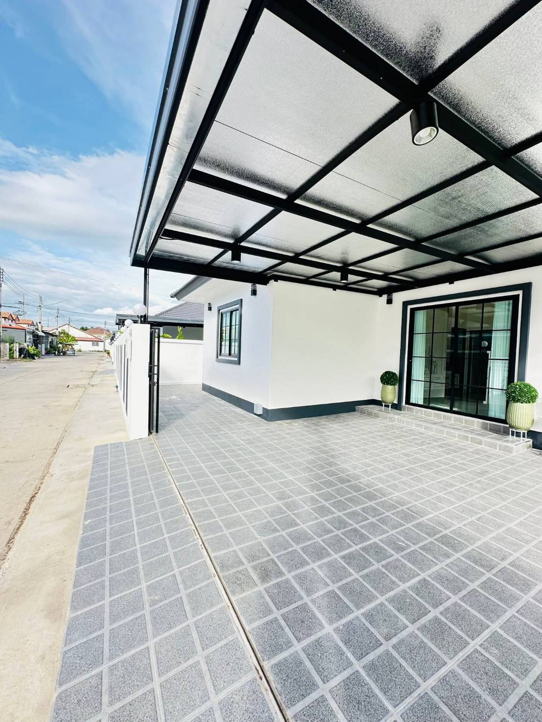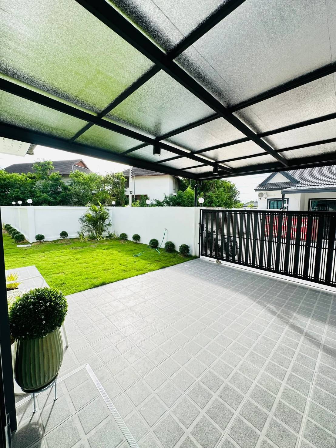 – Extend the garage roof with tiles